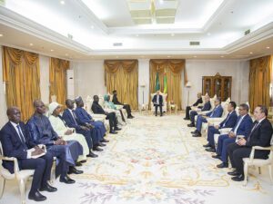 وعقب اللقاء أدلى معالي الوزير الأول السنغالي السيد عثمان سونكو، بالتصريح التالي: “استقبلتُ ووفدي المرافق من طرف فخامة رئيس الجمهورية السيد محمد ولد الشيخ الغزواني، وقد أتاح هذا اللقاء أولا فرصة للتبادل بين الوفدين ثم تشرفتُ بعدها بلقاء مع صاحب الفخامة على انفراد.