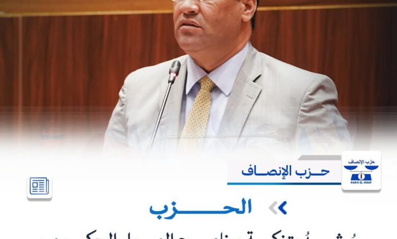 حزب الإنصاف يهنئ الوزير الأول بمناسبة تزكية برناج حكومته