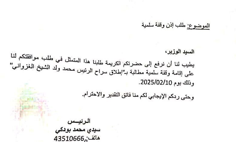 وتحمل الرسالة، المؤرخة في 29 يناير 2025، رأسية “مبادرة الوفاء للوطن”، وهي مبادرة نشأت قبيل الانتخابات الرئاسية، ونظّمت أنشطة سياسية داعمة للرئيس محمد ولد الشيخ الغزواني في يونيو 2024.