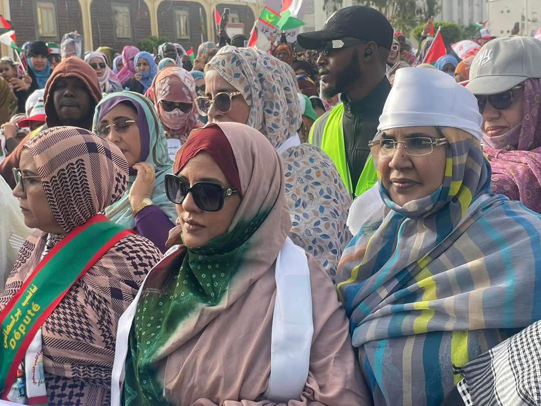 إننا في حزب الإنصاف، إذ نشارك النساء الموريتانيات هبتهن النبيلة لمناصرة الحق ورفض كل أشكال الغطرسة الإسرائيلية، لنشيد برسالتهن القوية بصفة عامة، ونخص النساء الإنصافيات، اللائي اظهرن حضورهن المميز، والمعبر عن تعلقهن الراسخ بمناصرة الحق والعدل والإنصاف، وتشبثهن باحقية شعبنا الفلسطيني في العيش الكريم ومناصرة قضيته العادلة، تماهيا مع موقف الشعب الموريتاني عامة وقائده السيد محمد ولد الشيخ الغزواني، الذي بذل جهودا كبيرة في جميع المناسبات والمحافل من أجل لجم إسرائيل عن تقتيل وتشريد الإخوة الفلسطينيين.