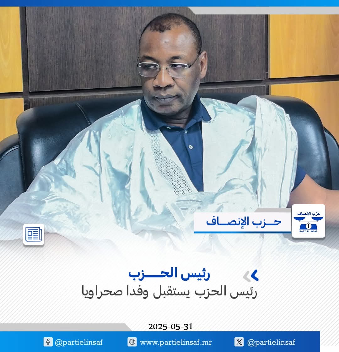 استقبل رئيس الحزب السيد سيد أحمد ولد محمد مساء السبت 31/05/2025 وفدا صحراويا يزور بلادنا هذه الأيام برئاسة السيد حم سلاما، رئيس المجلس الوطني الصحراوي.