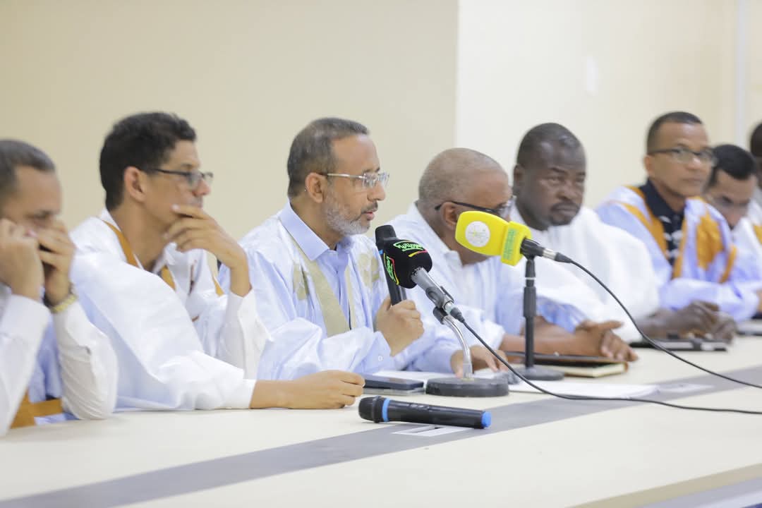 وفي مستهل كلمته، استعرض معالي المندوب أبرز محطات جولته الميدانية الأخيرة، خصوصًا في ولاية الترارزة، حيث أشرف على تدشين مشاريع تنموية وتنفيذ عمليات توزيع نقدي لفائدة الأسر المتعففة، تنفيذًا لتعليمات فخامة رئيس الجمهورية، السيد محمد ولد الشيخ الغزواني، الرامية إلى التخفيف من آثار الظروف المناخية الصعبة وارتفاع درجات الحرارة خلال هذه الفترة من السنة.