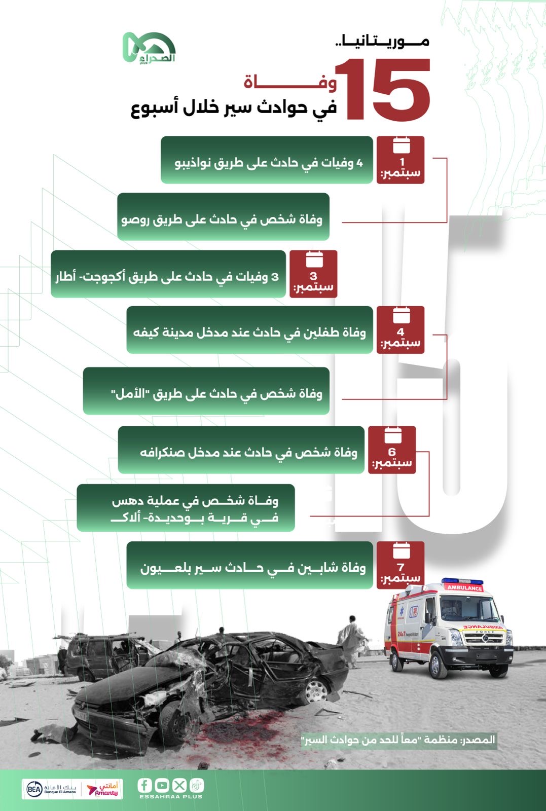 موريتانيا.. 15 وفاة في حوادث السير خلال أسبوع واحد (انفوغراف)