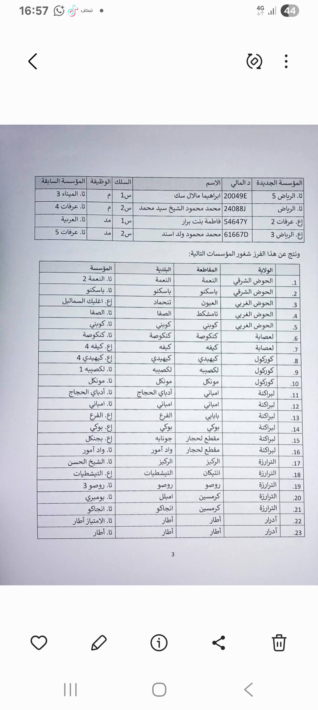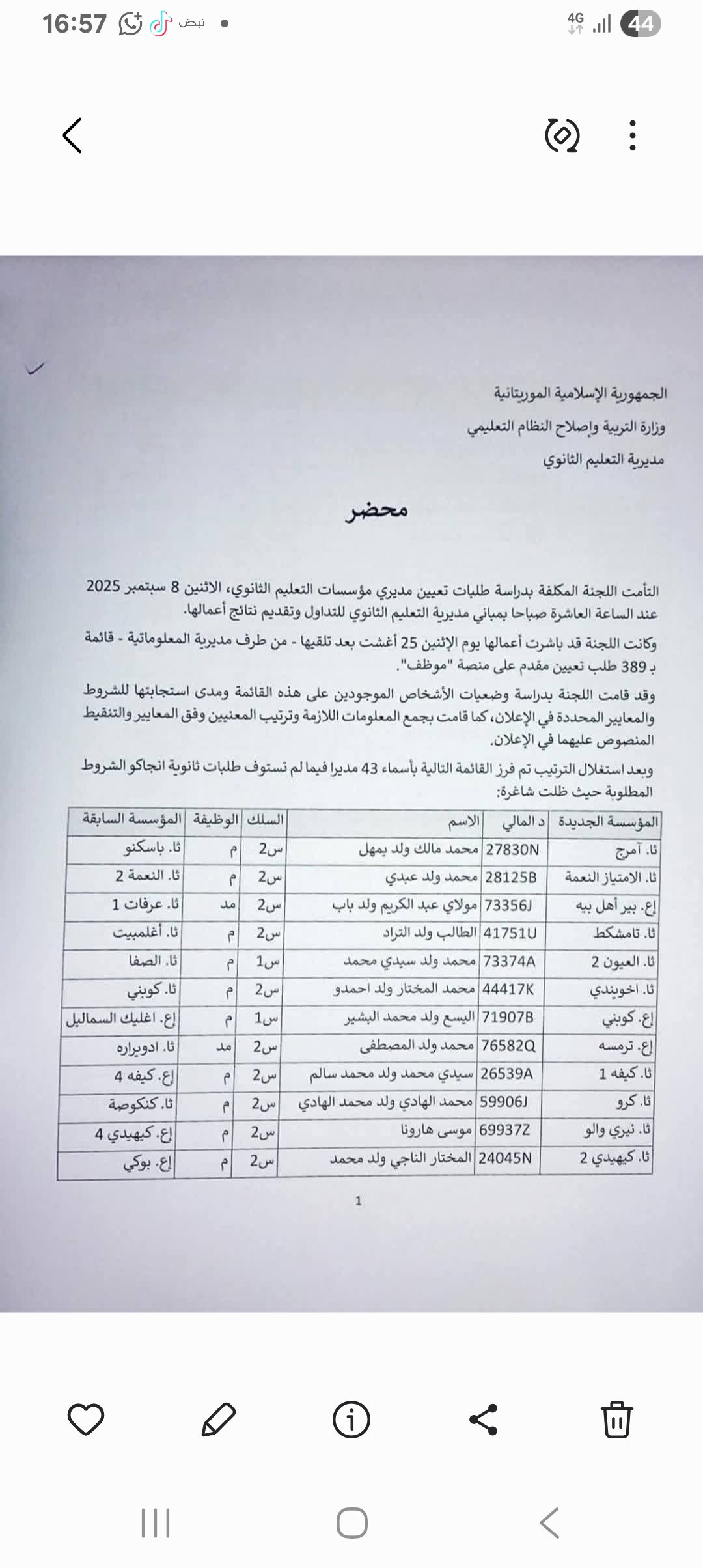 أعلنت وزارة التربية وإصلاح النظام التعليمي ، قائمة تعيينات مديري مؤسسات التعليم الثانوية، وذلك حسب الجدول التالي :