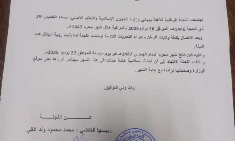 لجنة الأهلة تعلن الاثنين فاتح شهر رجب 1447