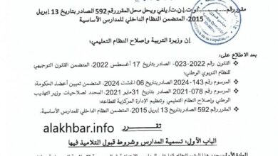 وزارة التربية وإصلاح النظام التعليمي …. مقرر جديد بحظر تسمية المدارس الابتدائية بما يحيل إلى انتماءات أسرية أو قبلية أو فئوية