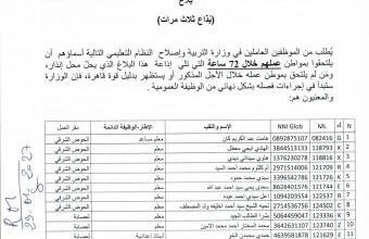 إنذار جديد لعشرات المدرسين بالالتحاق بالعمل أو الفصل من الوظائف