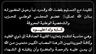 برقية تعزية “تلقينا، مع التسليم بقضاء الله وقدره، نبأ رحيل المغفور له بإذن الله تعالى، عضو المجلس الوطني للحزب والشخصية…