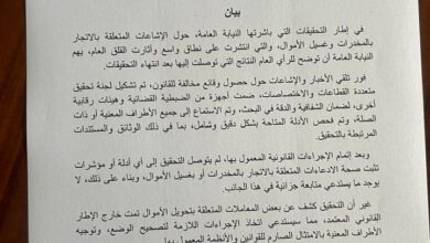 بيان من النيابة العامة حول حصيلة لجنة التحقيق في الاتجار بالمخدرات وغسيل الاموال