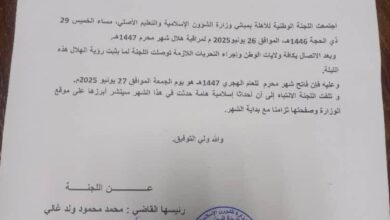 لجنة الأهلة تعلن الاثنين فاتح شهر رجب 1447