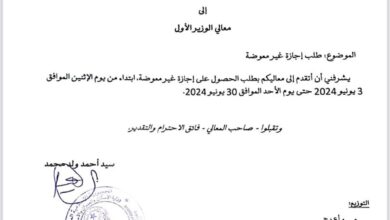 وجه وزير الإسكان والعمران والاستصلاح الترابي سيد أحمد ولد محمد رسالة للوزير الأول محمد ولد بلال يطلب فيها الحصول على…