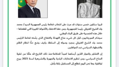 أعلن محمد ولد بوعماتو –في بيان صدر الأربعاء 17 إبريل 2024-دعمه لترشح الرئيس محمد ولد الشيخ الغزواني لمأمورية ثانية،…