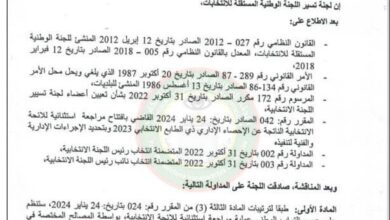 أصدرت لجنة تسيير اللجنة الوطنية المستقلة للانتخابات مداولتين يتم بموجبهنا فتح مراجعة استثنائية للائحة الانتخابية في عموم موريتانيا. وقالت اللجنة…