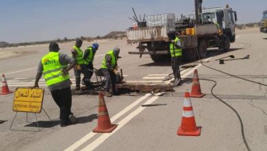 تعمل الفرق الفنية التابعة لمؤسسة أشغال صيانة الطرق على معالجة الحفر الموجودة على مدرج مطار سيليبابي، وقطع ونقل الأشجار خارج…