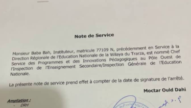ألغى وزير التهذيب الوطني وإصلاح النظام التعليمي المختار ولد داهي مذكرة صادرة عن الأمينة للوزارة وكالة فاطمة صمب علي بتعيين…