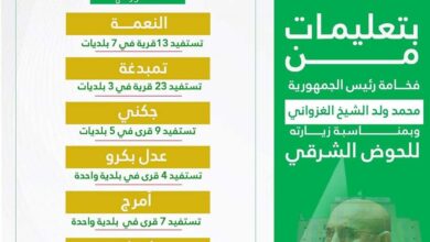 وصل عددها الى 90 / المندوب العام لـ “التآزر” يدشن ويطلق مشاريع خدمية في ولاية الحوض الشرقي