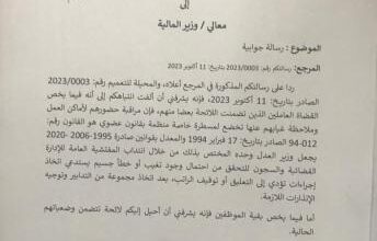 رد من وزير العدل على تعميم وزير المالية حول تعليق رواتب بعض القضاة