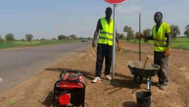 بتعليمات من معالي وزير التجهيز والنقل السيد محمد عالي ولد سيدي محمد . وضع إشارات تحذير وتوجيه لصالح السائقين على جميع ماحاور الطرق الوطنية