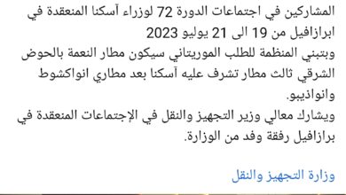 موريتانيا تطالب ” أسكنا ” بإدراج مطار النعمه الدولي ضمن المطارات المستفيدة من خدمات الهيأة