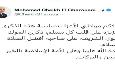تهنئة فخامة رئيس الجمهورية للمواطنين بمناسبة ذكرى المولد النبوي الشريف