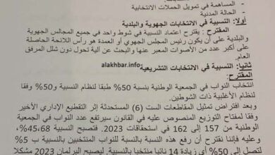 نص مقترحات وزير الداخلية: بسم الله الرحمن الرحيم وصلى الله على نبيه الكريم مقترحات: ـ النسبية في الانتخابات الجهوية…