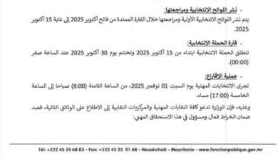 وزارة الوظيفة العمومية تعلن استدعاء هيأة الناخبين ، لتحديد تمثيلية المنظمات النقابية لأول مرة في موريتانيا