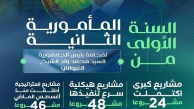 اكتملت خلال السنة الأولى من المأمورية الثانية لرئيس الجمهورية محمد ولد الغزواني 24 مشروعا كبيرا، غطت مجالات محورية؛ تعليمية وصحية،…